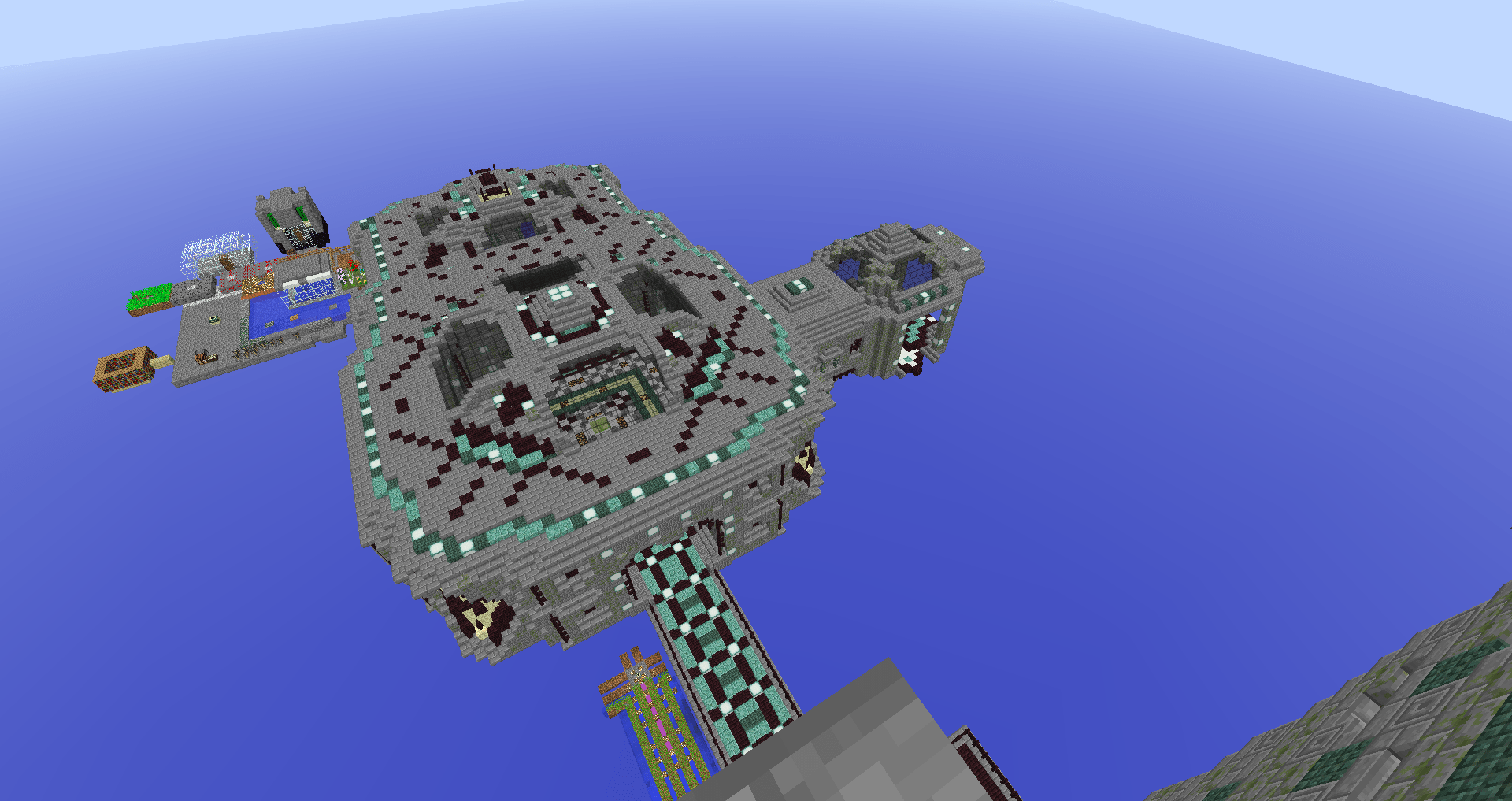 Over time, players have to build a base, and tower out to the other islands that are thousands of blocks away from spawn.